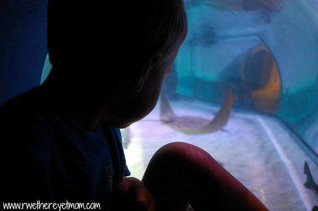 We really liked the fact that each room was set up so differently to display all the sea creatures. Such as this huge tank that housed huge stingrays. You could walk around the tank, climb up a set of stairs and peer down into the tank, or climb into one of these side bubbles and get “in” the tank.
