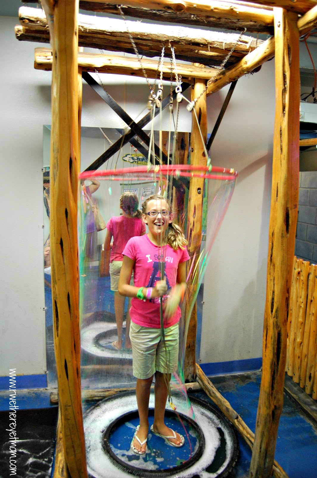 I loved their slogan on their website, “Kids Play to Learn and Adults Learn to Play.” So true. Kids don’t realize how much they are learning with the fun things there are to do, such a creating a bubble as big as they are, working at a “bank”, or feeding the ball machine. And I certainly played with my kids!!