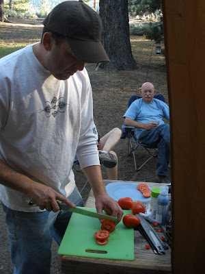 Handsome Hubby and I (and Grant) stayed in the big tent. Lovingly nicknamed The Taj (as in Mahal) this tent was handed down to us from my parents. It is a huge, canvas, two room tent that is big enough for us to stand up in. (Because scuttling around, stooped over hurts my knees and back. )