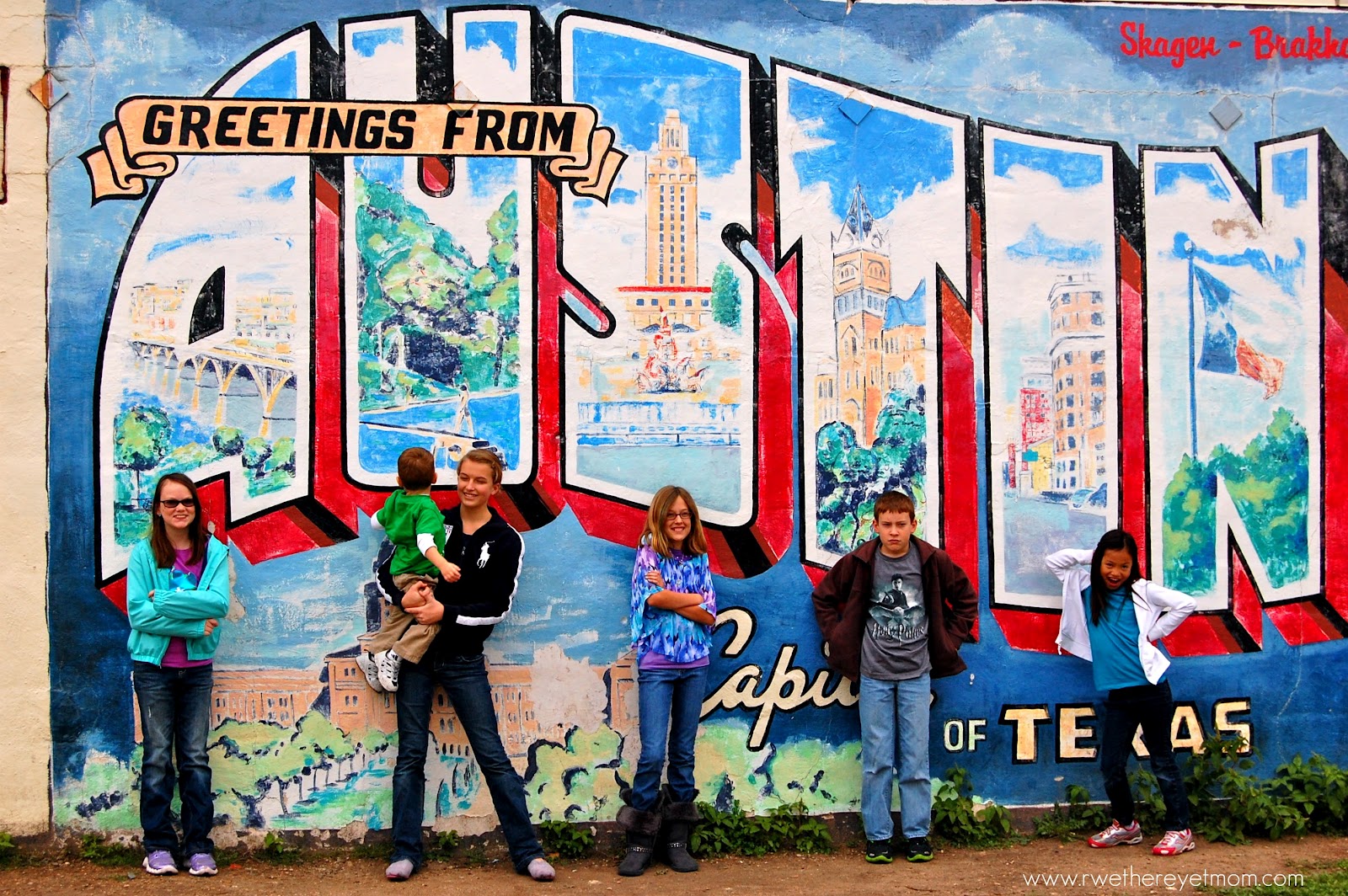 The best place to take a picture in Austin ~ hands down ~ is the local “Greetings from Austin” mural. Located on the northwest corner of Annie & South First street, this is a popular place for engagement & wedding photos. And the occasional goofy family shots……