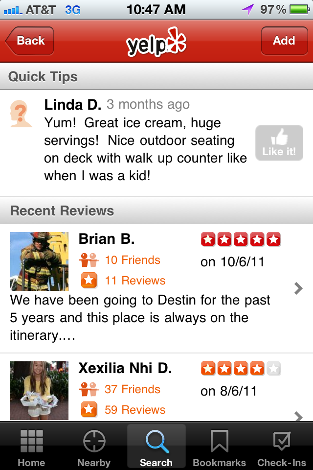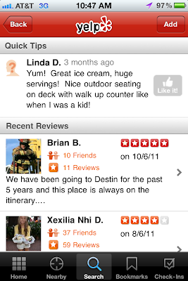 So this past summer, while vacationing in Destin, we used Yelp to help us find a local ice cream shop for a fun evening treat. Yelp led us here: