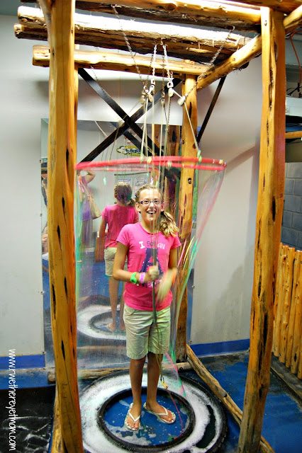 I loved their slogan on their website, “Kids Play to Learn and Adults Learn to Play.” So true. Kids don’t realize how much they are learning with the fun things there are to do, such a creating a bubble as big as they are, working at a “bank”, or feeding the ball machine. And I certainly played with my kids!!